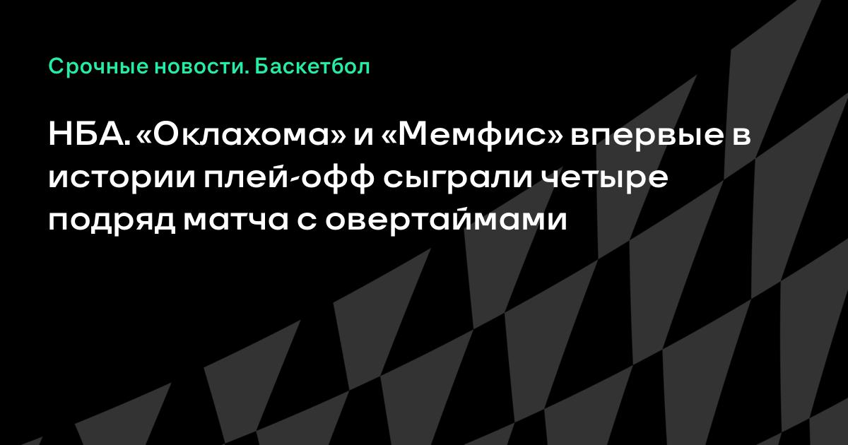 НБА. «Оклахома» и «Мемфис» впервые в истории плей-офф сыграли четыре подряд матча с овертаймами
