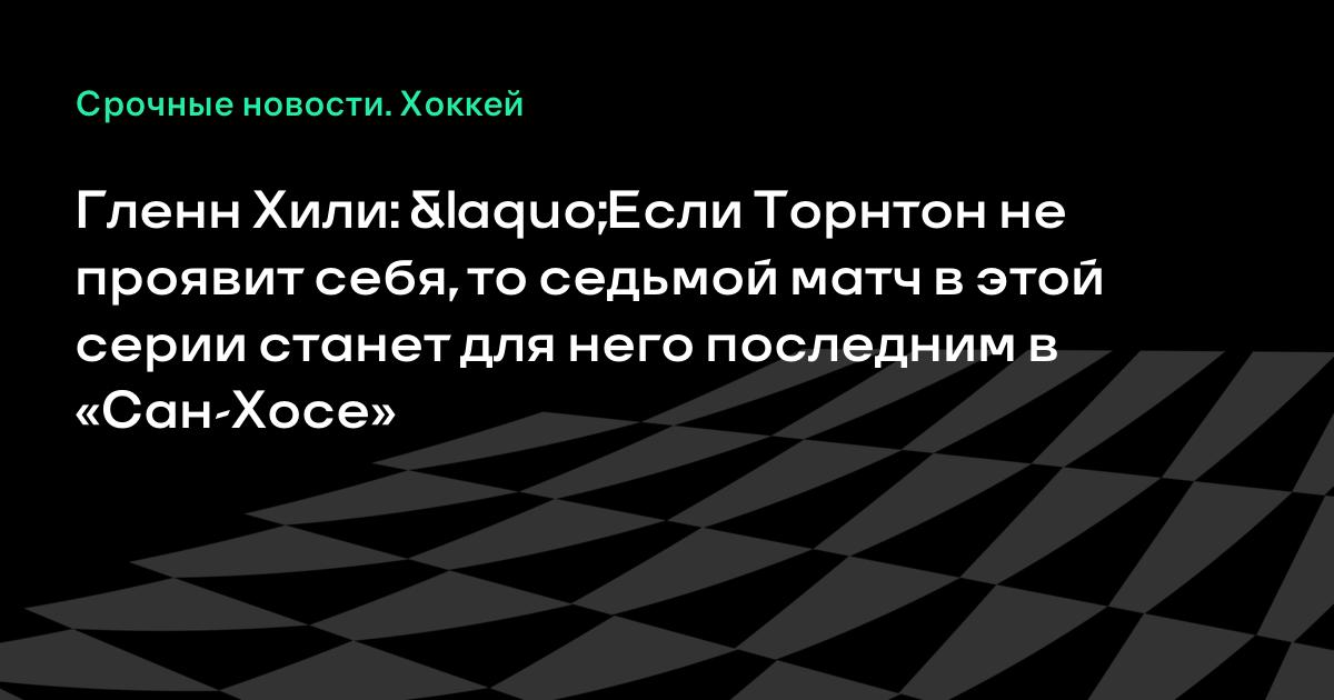 Гленн Хили: «Если Торнтон не проявит себя, то седьмой матч в этой серии станет для него последним в «Сан-Хосе»