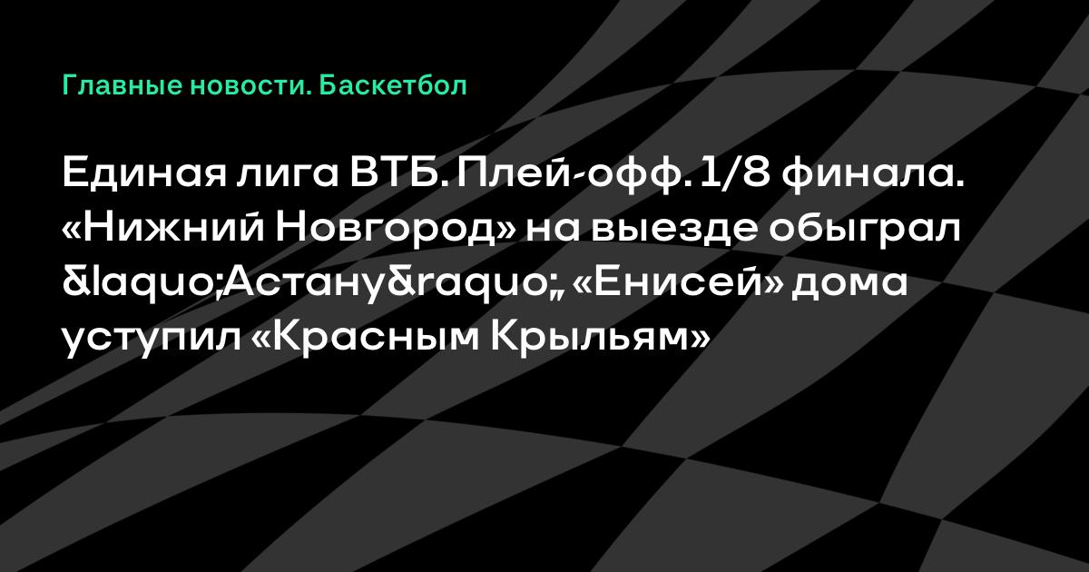 Единая лига ВТБ. Плей-офф. 1/8 финала. «Нижний Новгород» на выезде обыграл «Астану», «Енисей» дома уступил «Красным Крыльям»