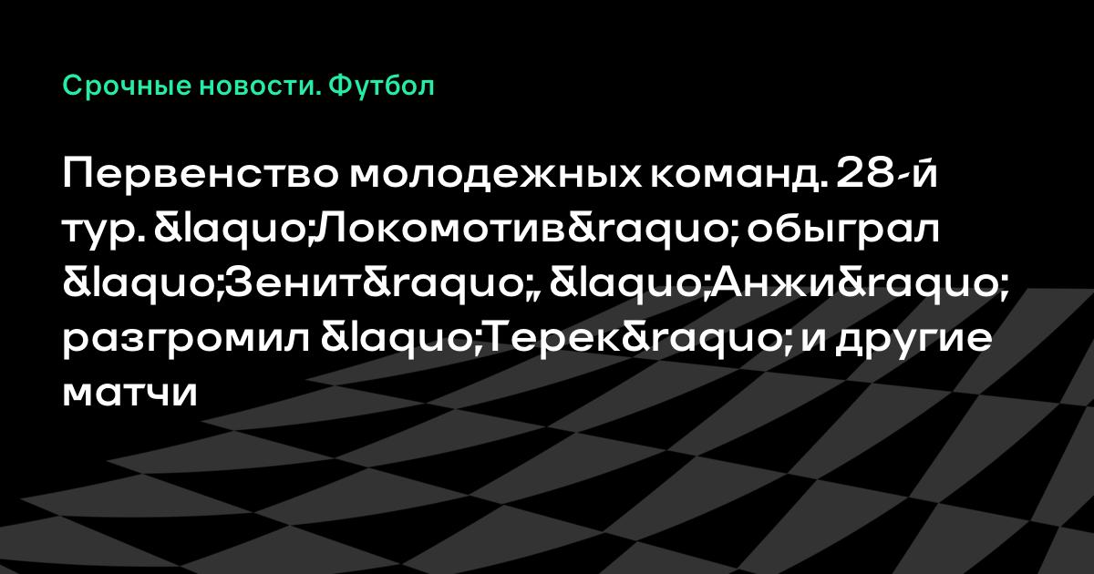Первенство молодежных команд. 28-й тур. «Локомотив» обыграл «Зенит», «Анжи» разгромил «Терек» и другие матчи