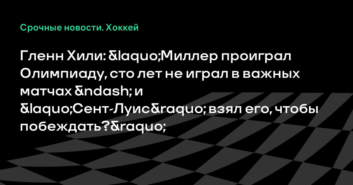 Гленн Хили: «Миллер проиграл Олимпиаду, сто лет не играл в важных матчах – и «Сент-Луис» взял его, чтобы побеждать?»