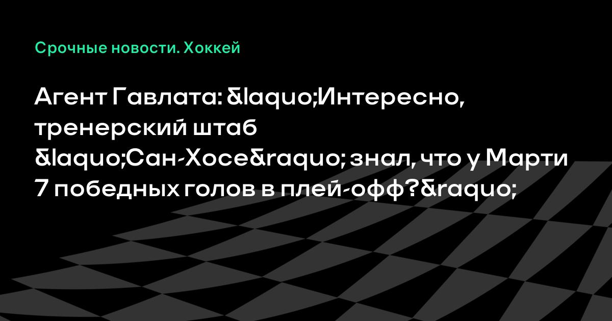 Агент Гавлата: «Интересно, тренерский штаб «Сан-Хосе» знал, что у Марти 7 победных голов в плей-офф?»