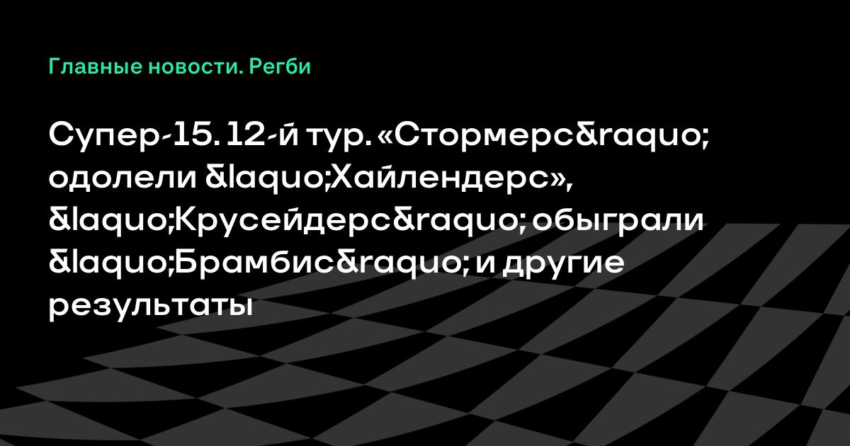 Сегодня завершились матчи 12-го тура регбийного турнира Супер-15. «Крусейдерс» обыграли «Брамбис» (40:20), «Стормерс» одолели «Хайлендерс» (29:28).