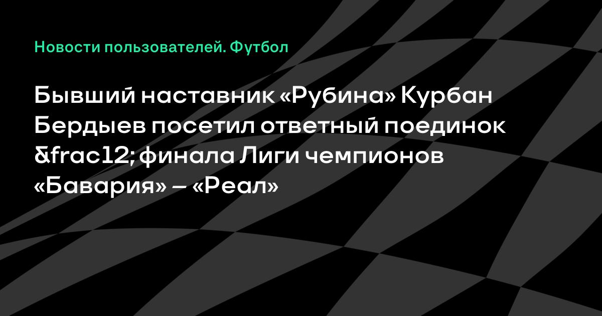 Бывший наставник «Рубина» Курбан Бердыев посетил ответный поединок ½ финала Лиги чемпионов «Бавария» – «Реал»: команда Анчелотти обыграла команду Хосепа Гвардьолы (4:0). Чем не повод болельщикам вспомнить о том, что казанцы также могут похвастаться успехом во встрече против коллектива испанского тренера? В 2009 году они на выезде обыграли «Барселону», которую тогда тренировал Гвардьола, со счетом 2:1. Говорить о том, кто тренировал «Рубин», думаю, не стоит