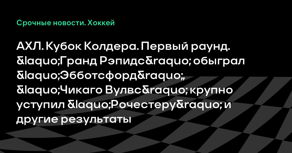АХЛ. Кубок Колдера. Первый раунд. «Гранд Рэпидс» обыграл «Эбботсфорд», «Чикаго Вулвс» крупно уступил «Рочестеру» и другие результаты