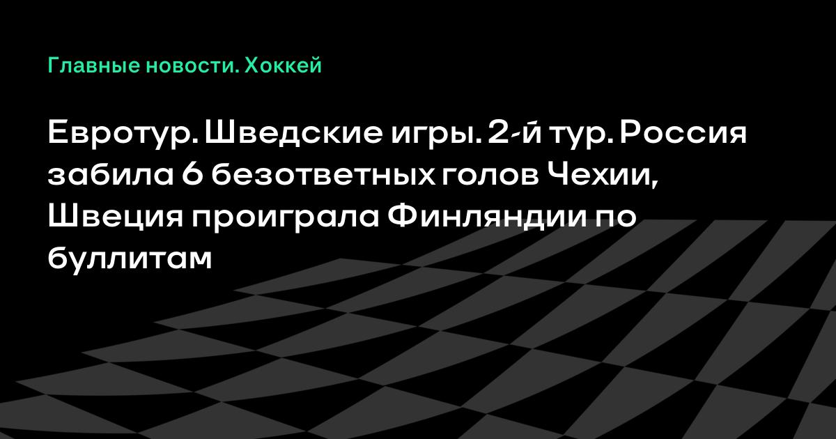 Евротур. Шведские игры. 2-й тур. Россия забила 6 безответных голов Чехии, Швеция проиграла Финляндии по буллитам