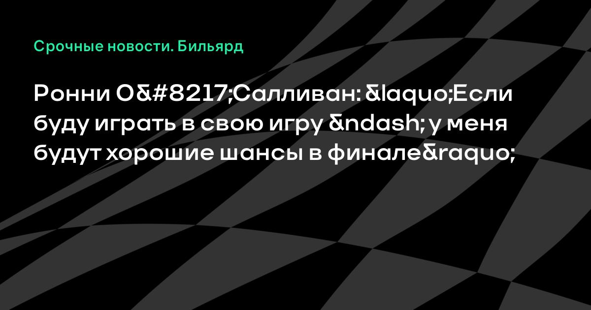 Теперь мне нужно подготовиться. Если я буду играть в свою игру, то тогда у меня будут хорошие шансы на победу», – приводит слова О’Салливана World Snooker.