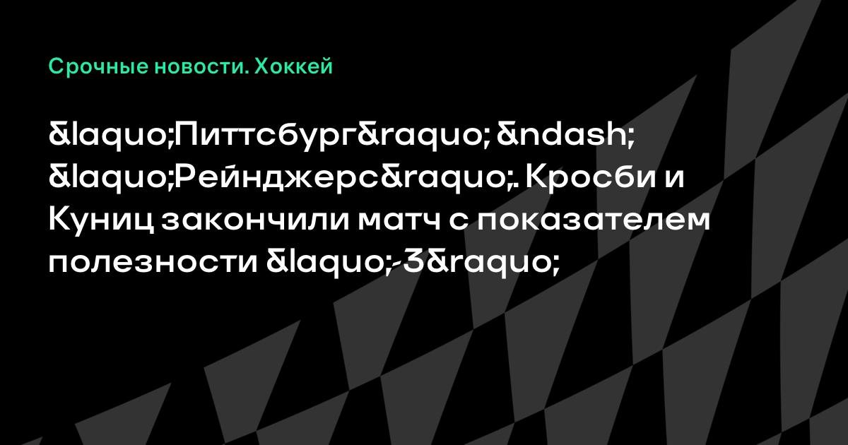 «Питтсбург» – «Рейнджерс». Кросби и Куниц закончили матч с показателем полезности «-3»