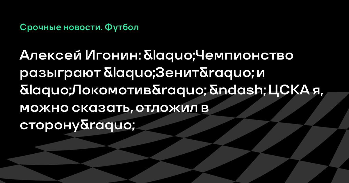 Алексей Игонин: «Чемпионство разыграют «Зенит» и «Локомотив» – ЦСКА я, можно сказать, отложил в сторону»