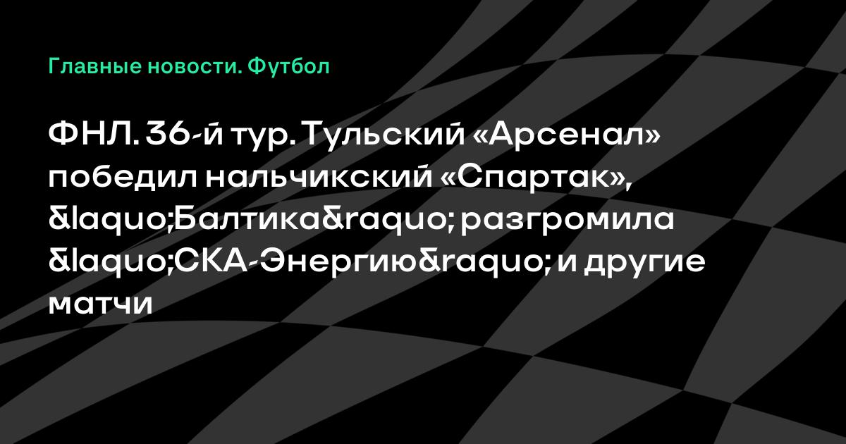 ФНЛ. 36-й тур. Тульский «Арсенал» победил нальчикский «Спартак», «Балтика» разгромила «СКА-Энергию» и другие матчи