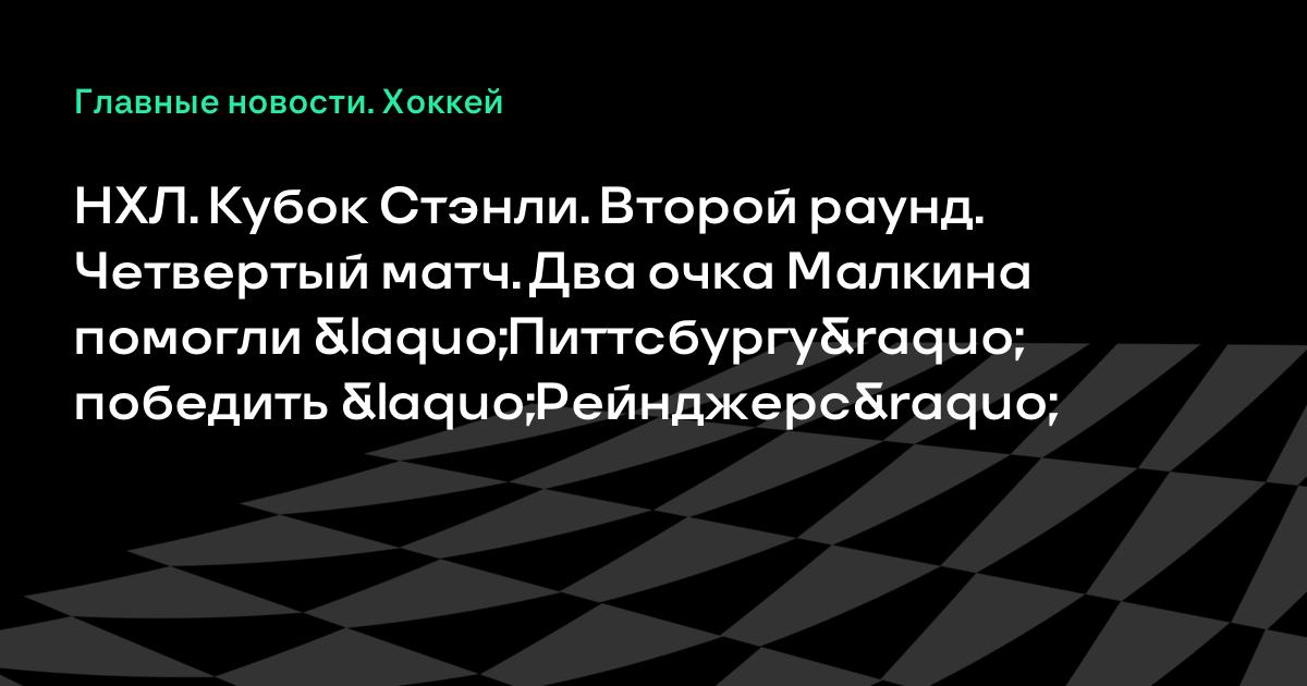 НХЛ. Кубок Стэнли. Второй раунд. Четвертый матч. Два очка Малкина помогли «Питтсбургу» победить «Рейнджерс»