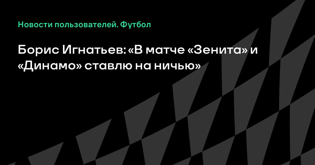 Борис Игнатьев: «В матче «Зенита» и «Динамо» ставлю на ничью»