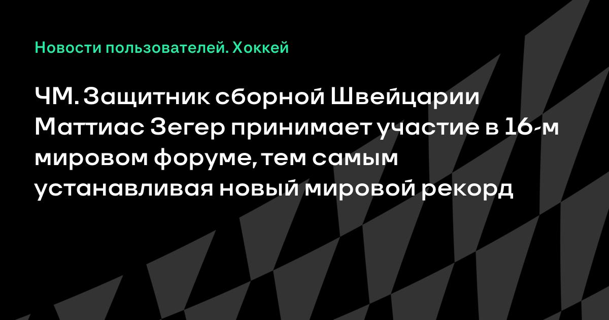Выйдя на лёд в сегодняшнем матче против российской команды, капитан сборной Швейцарии 36-летний Маттиас Зегер установил новое мировое достижение по количеству участий в чемпионатах мира.