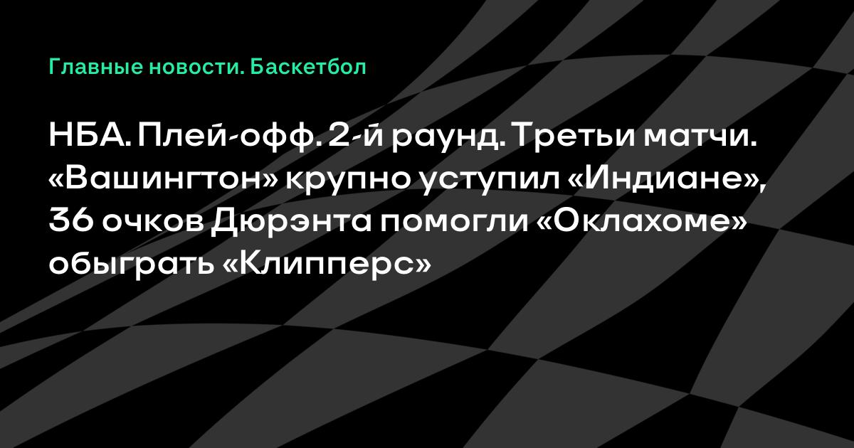 НБА. Плей-офф. 2-й раунд. Третьи матчи. «Вашингтон» крупно уступил «Индиане», 36 очков Дюрэнта помогли «Оклахоме» обыграть «Клипперс»
