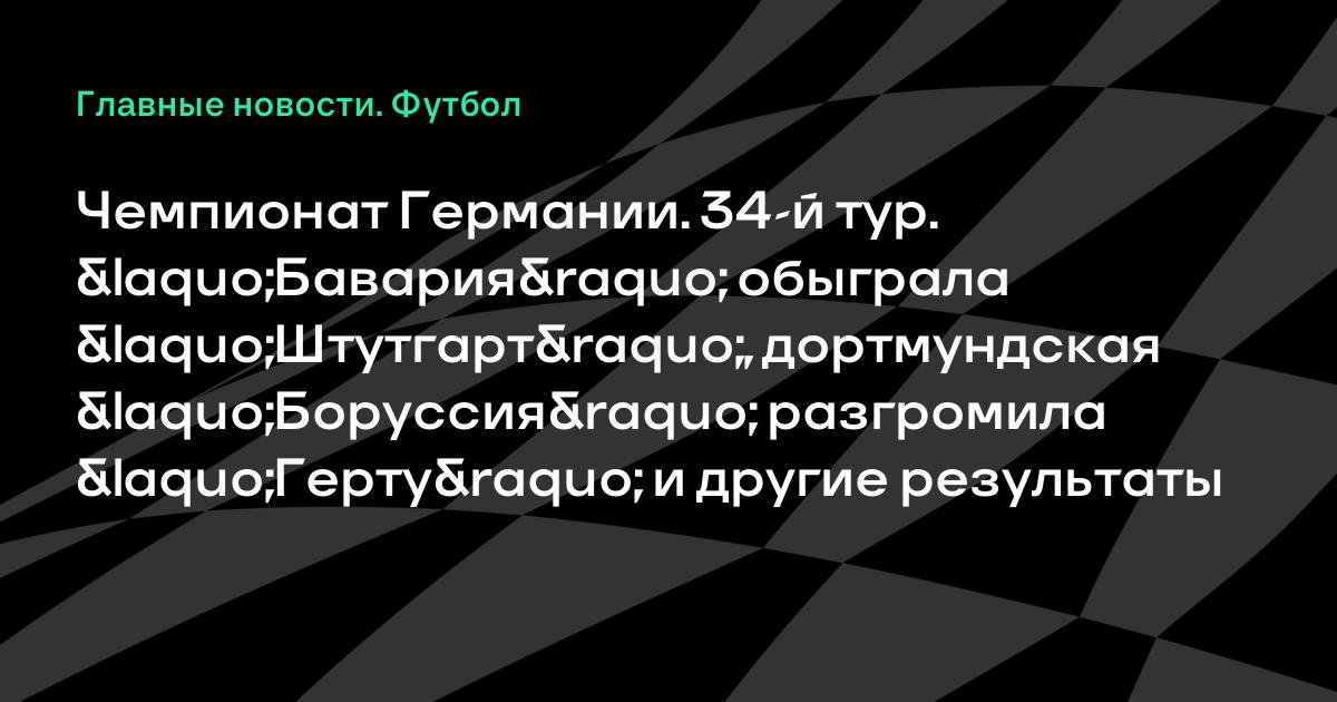 Чемпионат Германии. 34-й тур. «Бавария» обыграла «Штутгарт», дортмундская «Боруссия» разгромила «Герту» и другие результаты