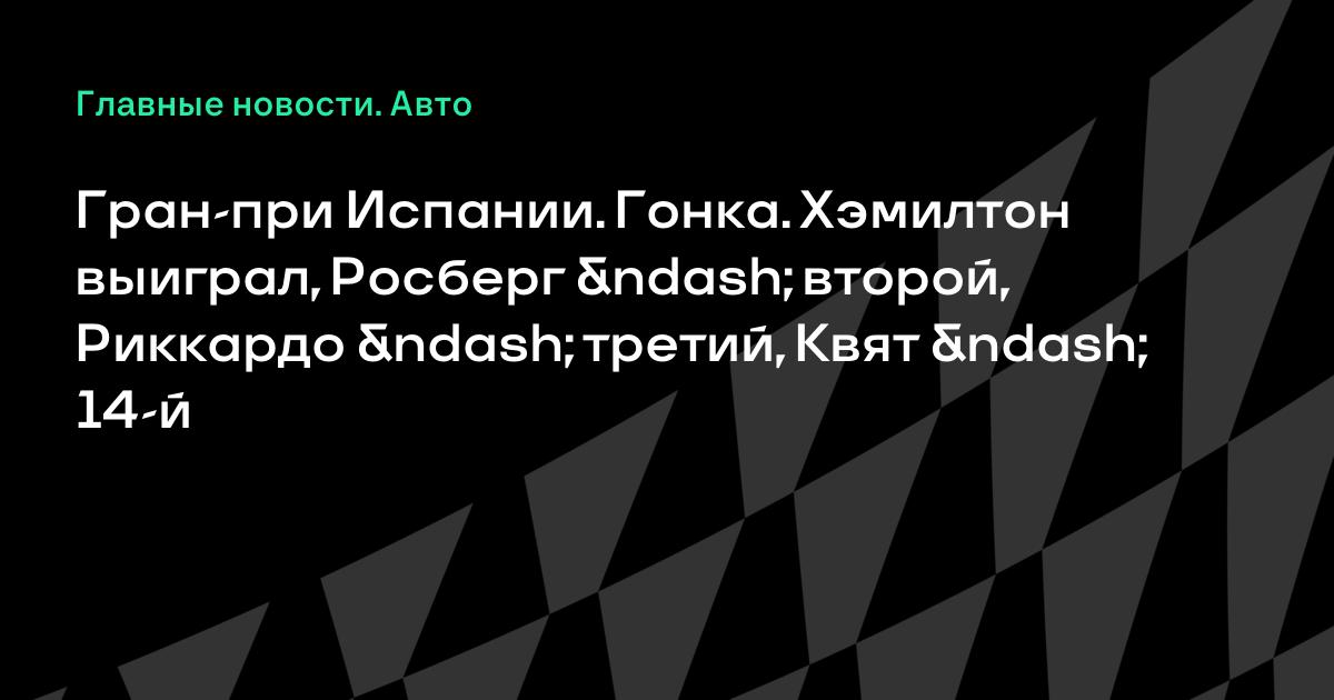 Гран-при Испании. Гонка. Хэмилтон выиграл, Росберг – второй, Риккардо – третий, Квят – 14-й