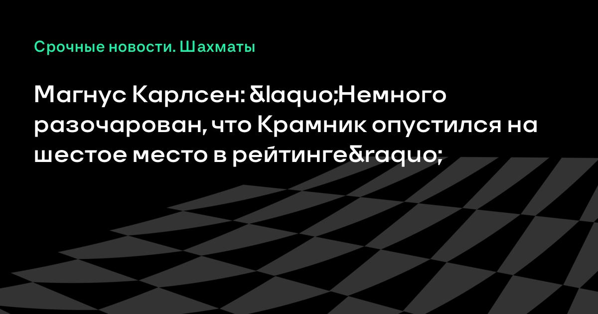 Я немного разочарован, что он опустился на шестое место в рейтинге. Это просто-напросто очень плохо. Он сейчас уходит на территорию Накамуры... Шутка. Несмотря на то, что Крамник слегка потерял в рейтинге, он опасный и интересный соперник», – приводит слова Карлсена NRK.