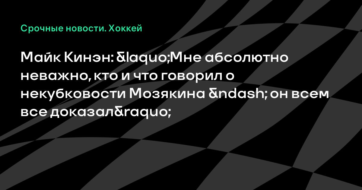 Майк Кинэн: «Мне абсолютно неважно, кто и что говорил о некубковости Мозякина – он всем все доказал»