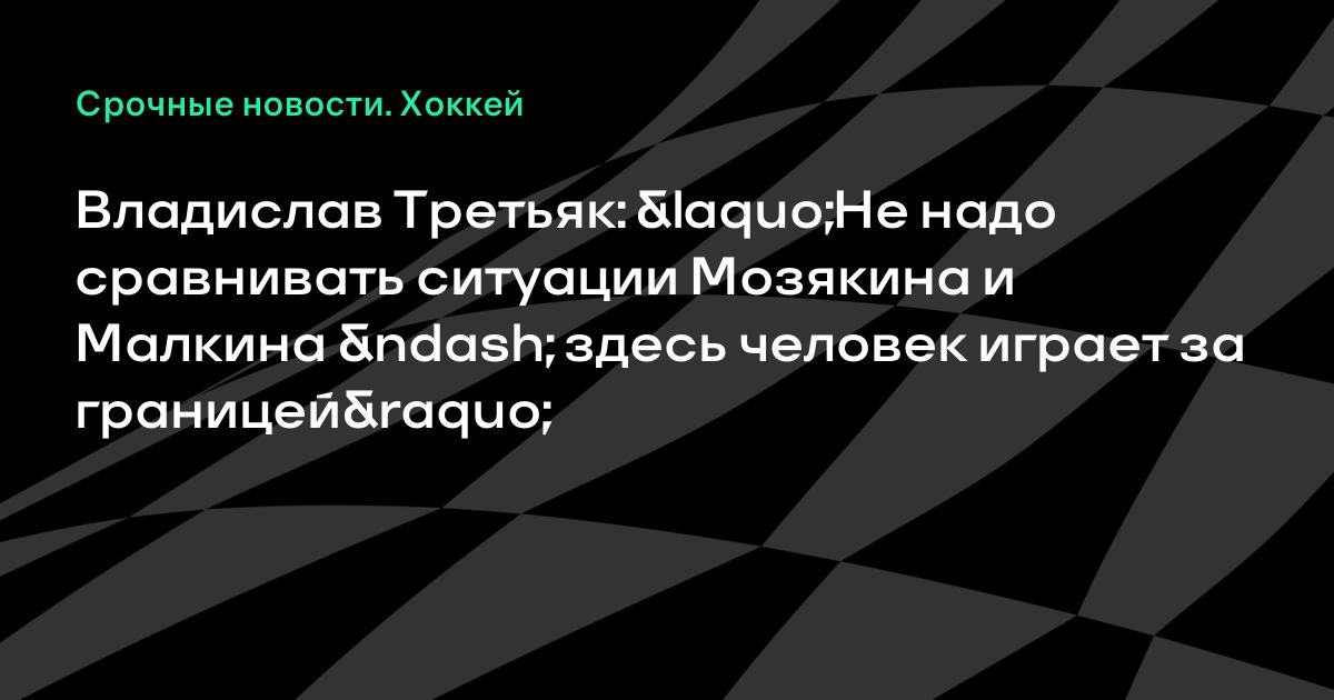Владислав Третьяк: «Не надо сравнивать ситуации Мозякина и Малкина – здесь человек играет за границей»