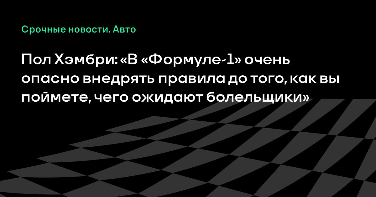 Пол Хэмбри: «В «Формуле-1» очень опасно внедрять правила до того, как вы поймете, чего ожидают болельщики»