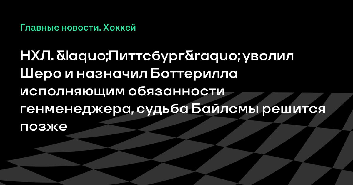 НХЛ. «Питтсбург» уволил Шеро и назначил Боттерилла исполняющим обязанности генменеджера, судьба Байлсмы решится позже