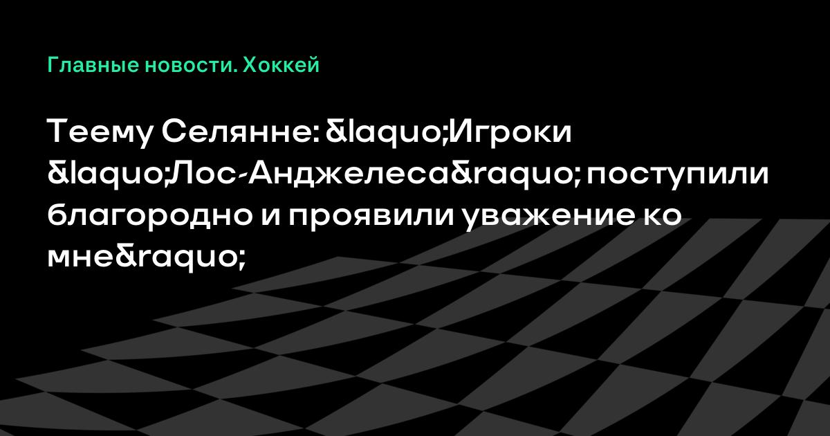 Теему Селянне: «Игроки «Лос-Анджелеса» поступили благородно и проявили уважение ко мне»