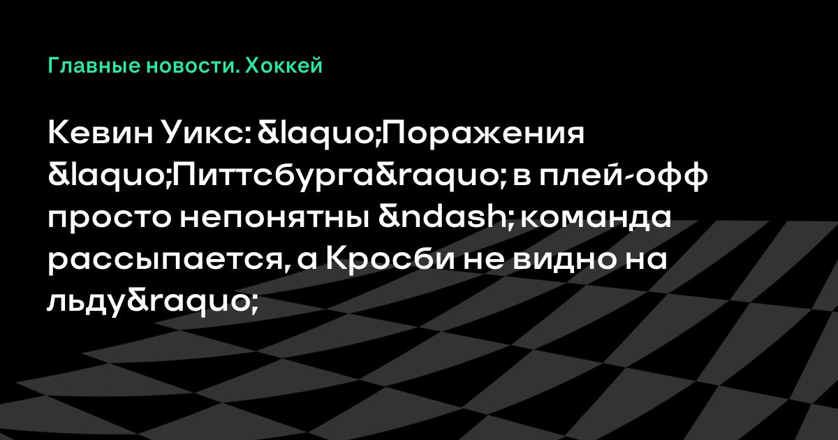 Кевин Уикс: «Поражения «Питтсбурга» в плей-офф просто непонятны – команда рассыпается, а Кросби не видно на льду»