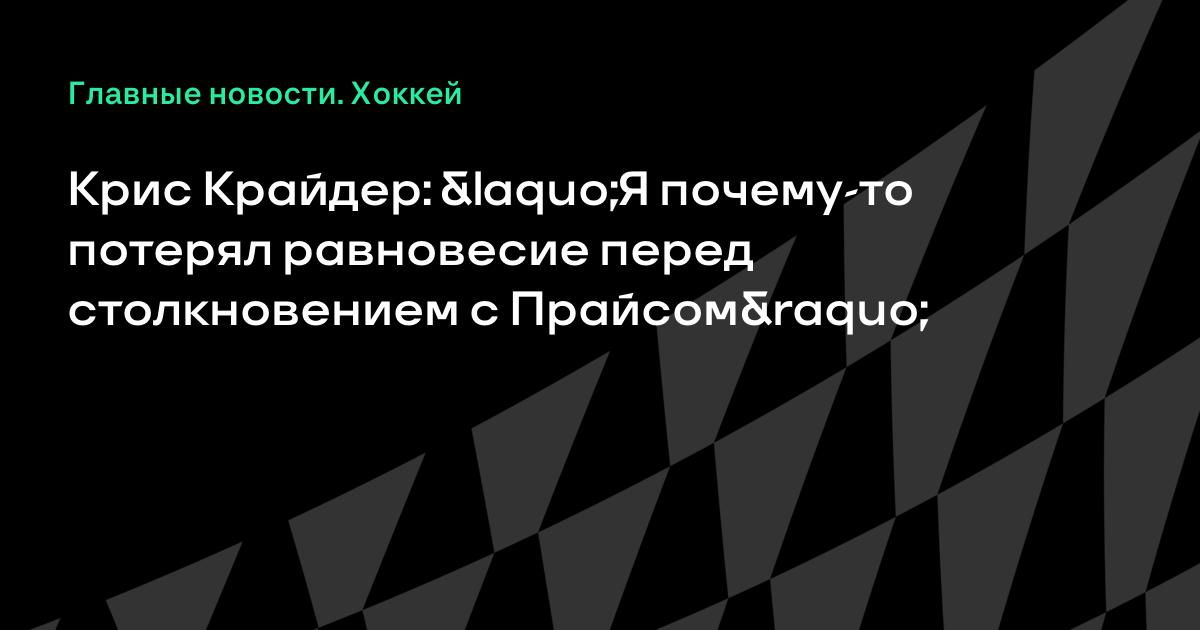 Форвард «Рейнджерс» Крис Крайдер высказался по поводу столкновения с вратарем «Монреаля» Кэри Прайсом.«Я опустил голову, пытаясь укротить шайбу. Я почему-то потерял равновесие. Возможно, кто-то помешал мне сзади. Мне казалось, что я должен был удержаться на ногах.