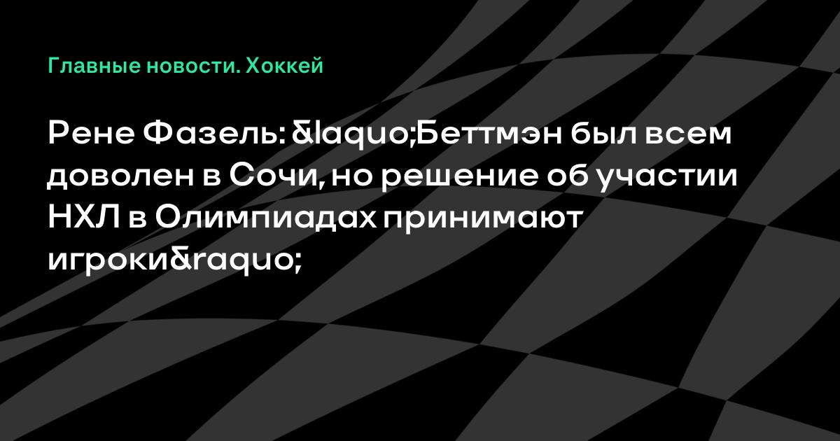 Рене Фазель: «Беттмэн был всем доволен в Сочи, но решение об участии НХЛ в Олимпиадах принимают игроки»