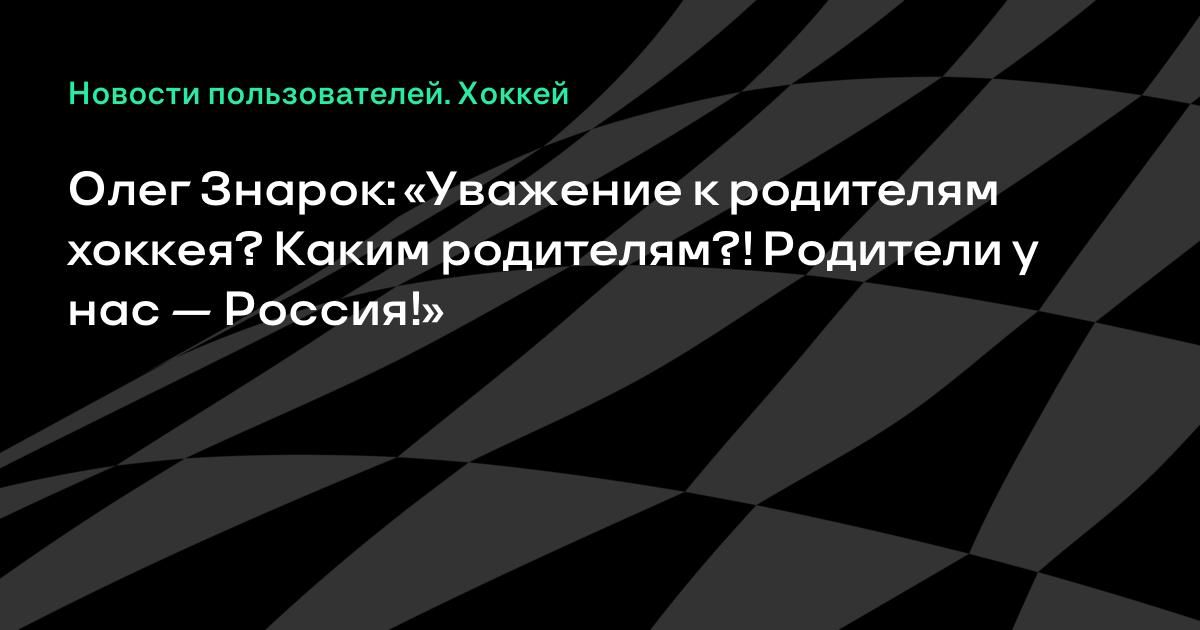 Олег Знарок: «Уважение к родителям хоккея? Каким родителям?! Родители у нас — Россия!»