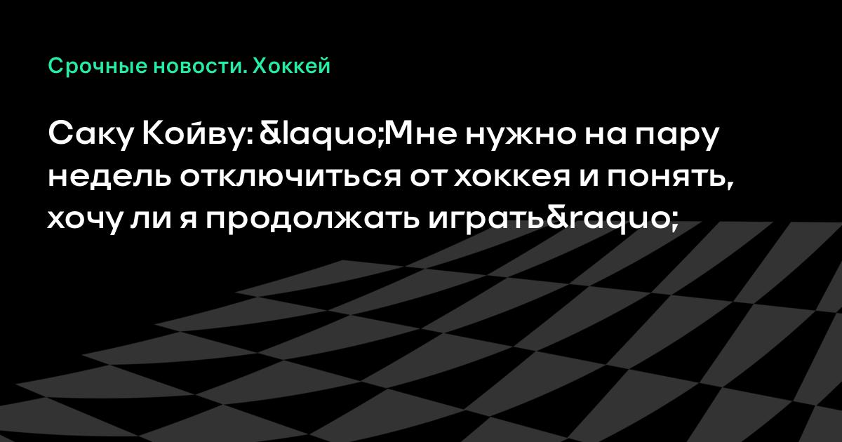 Саку Койву: «Мне нужно на пару недель отключиться от хоккея и понять, хочу ли я продолжать играть»