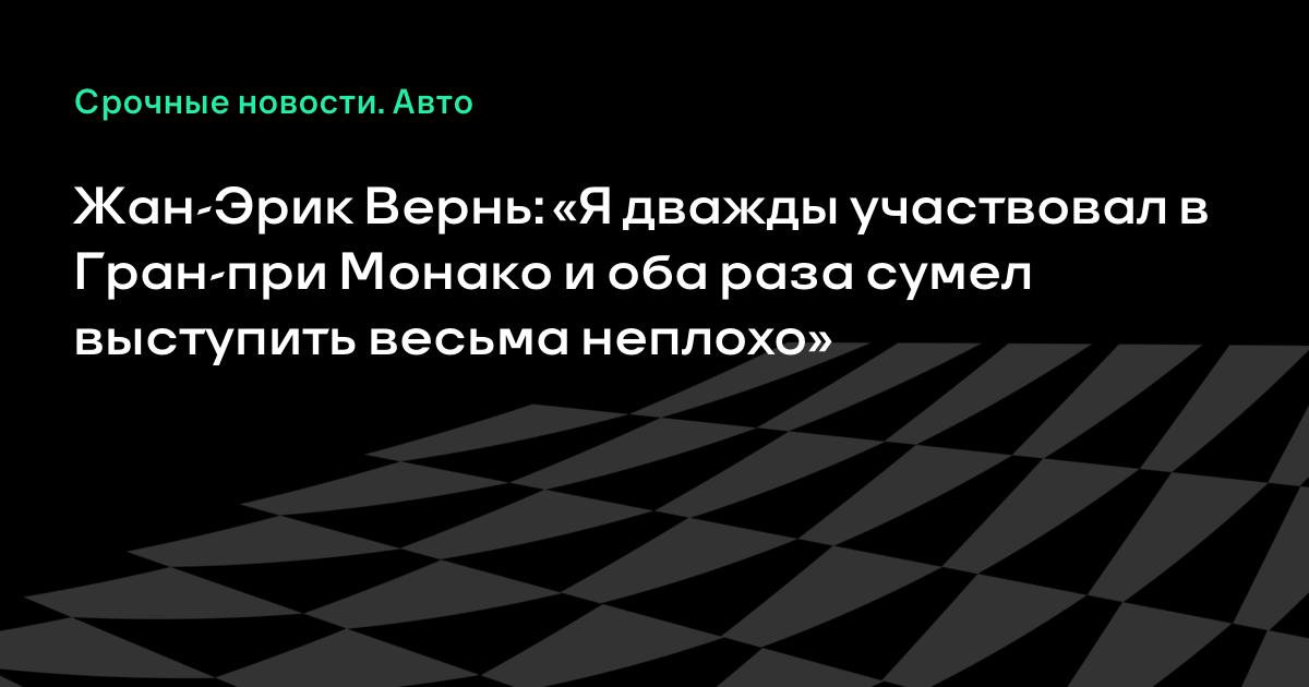 Жан-Эрик Вернь: «Я дважды участвовал в Гран-при Монако и оба раза сумел выступить весьма неплохо»