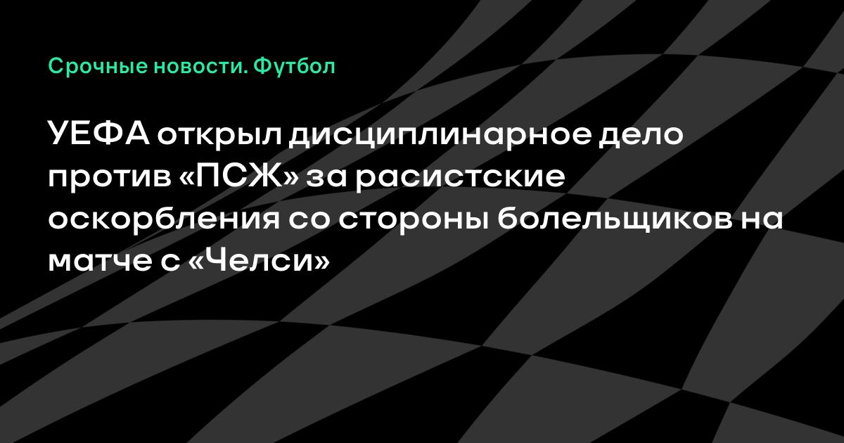 УЕФА начал дисциплинарное разбирательство в отношении «Пари Сен-Жермен» в связи с тем, что на первом четвертьфинале Лиги чемпионов с «Челси» (3:1) болельщики парижан позволили себе расистские оскорбления.
