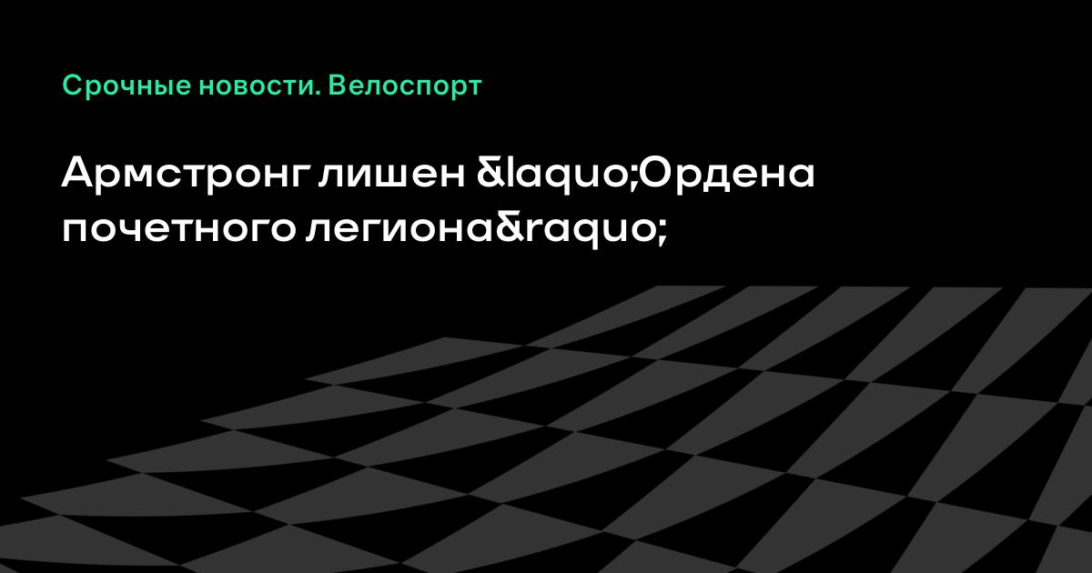 Бывший американский велогонщик Лэнс Армстронг лишен награды «Орден почетного легиона», которая является самой престижной во Франции.