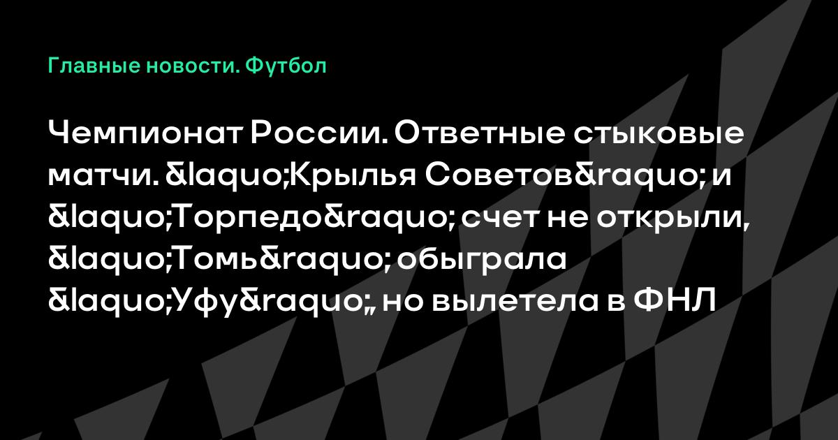 Чемпионат России. Ответные стыковые матчи. «Крылья Советов» и «Торпедо» счет не открыли, «Томь» обыграла «Уфу», но вылетела в ФНЛ