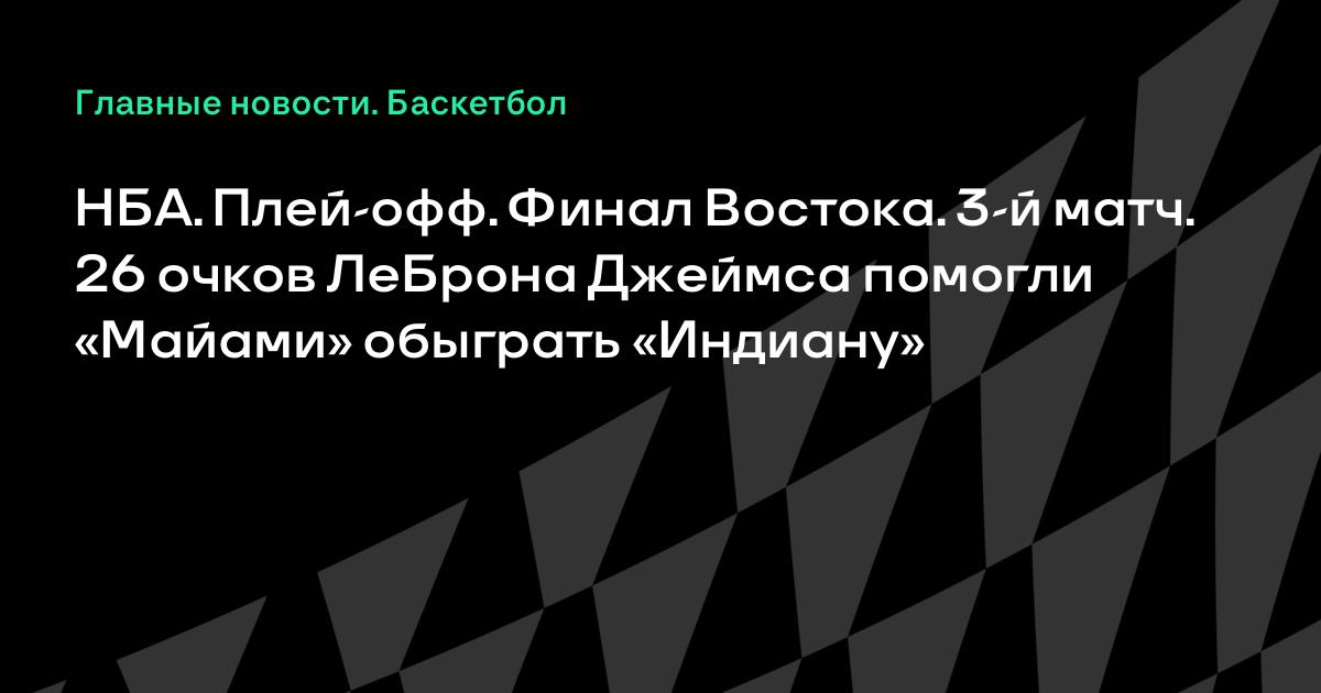 НБА. Плей-офф. Финал Востока. 3-й матч. 26 очков ЛеБрона Джеймса помогли «Майами» обыграть «Индиану»