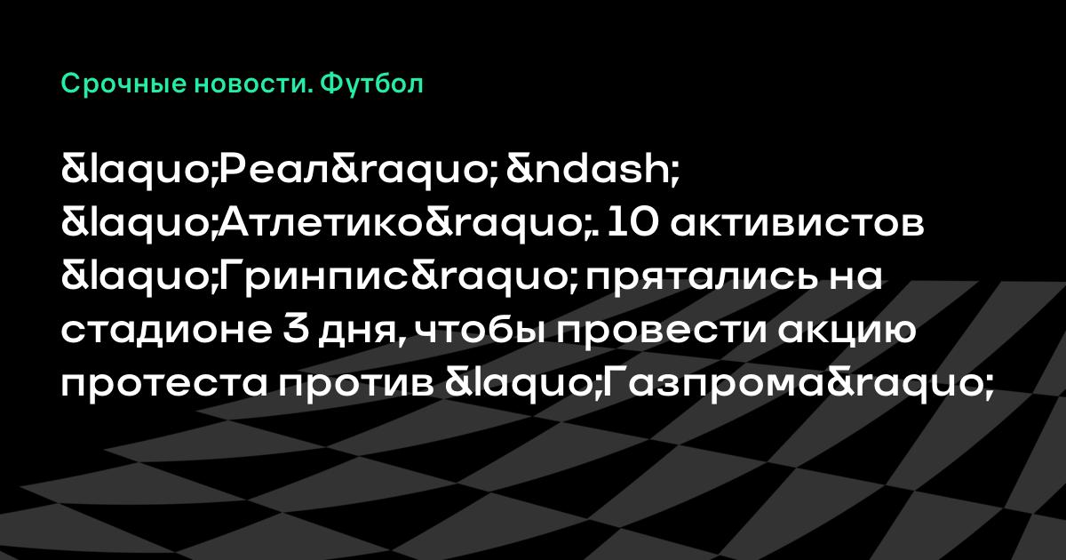 «Реал» – «Атлетико». 10 активистов «Гринпис» прятались на стадионе 3 дня, чтобы провести акцию протеста против «Газпрома»