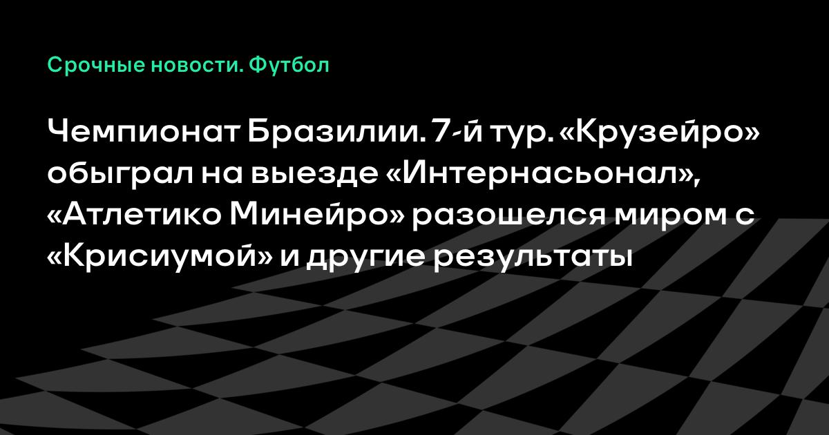 Чемпионат Бразилии. 7-й тур. «Крузейро» обыграл на выезде «Интернасьонал», «Атлетико Минейро» разошелся миром с «Крисиумой» и другие результаты