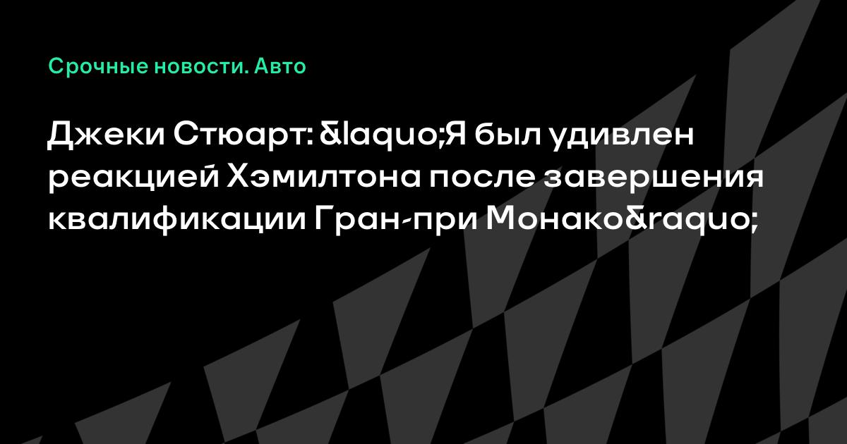 Трехкратный чемпион мира «Формулы-1» Джеки Стюарт признался, что был удивлен недовольством пилота «Мерседеса» Льюиса Хэмилтона после квалификации Гран-при Монако, когда британец стал вторым, оказавшись позади напарника Нико Росберга.