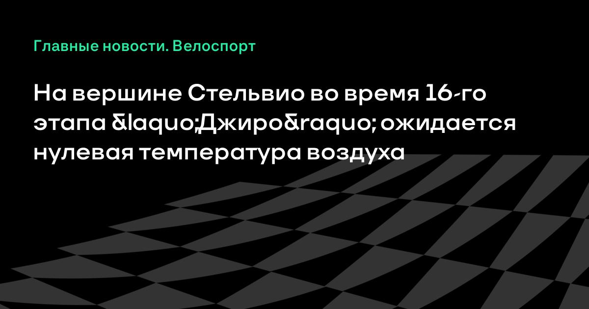 На вершине Пассо делло Стельвио во время 16-го этапа многодневки «Джиро д’Италия», который пройдет завтра, ожидаются дождь, ветер и нулевая температура воздуха.