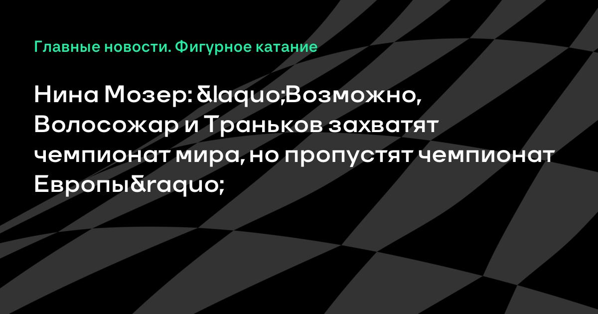 Нина Мозер: «Возможно, Волосожар и Траньков захватят чемпионат мира, но пропустят чемпионат Европы»