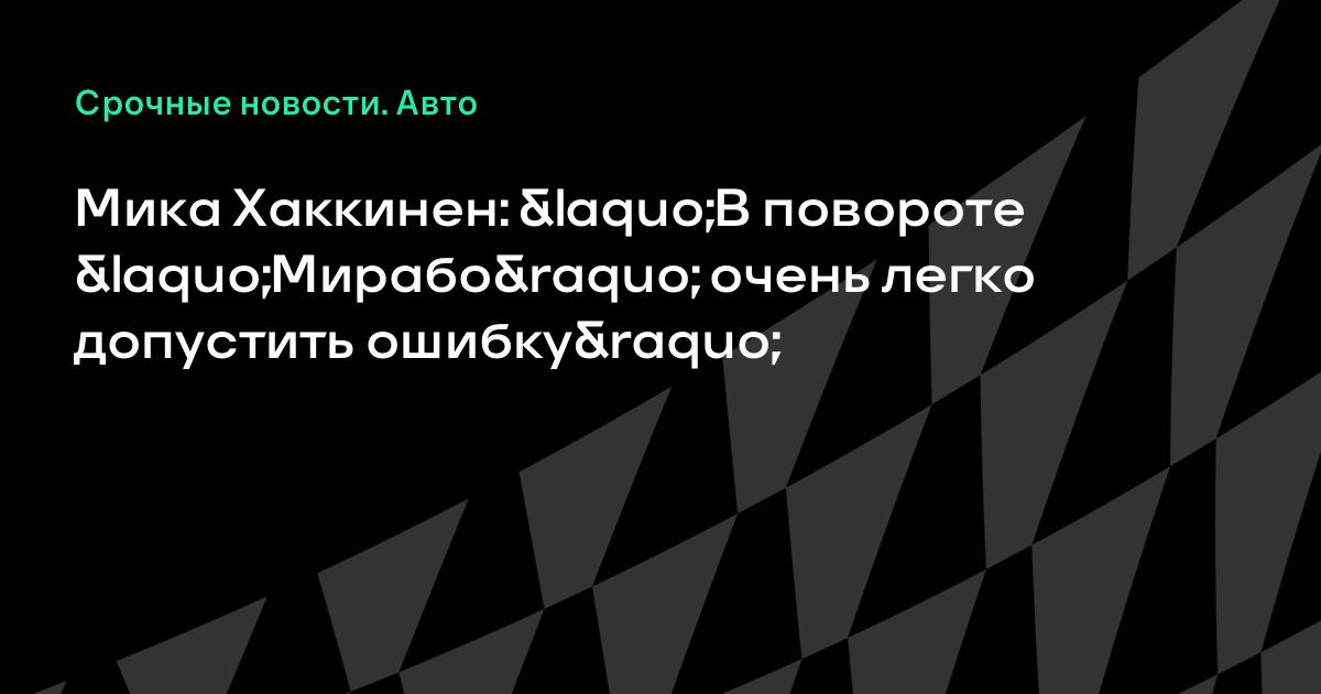 Мика Хаккинен: «В повороте «Мирабо» очень легко допустить ошибку»