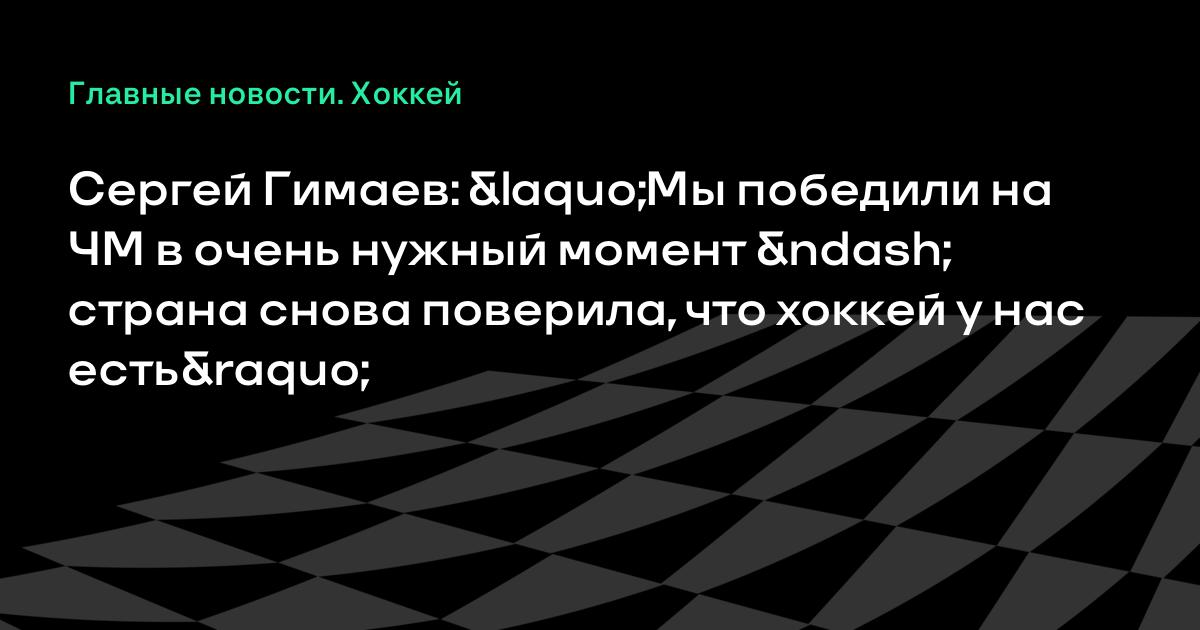 – Я бы не стал приравнивать этот результат к победе на Олимпиаде. Это разный уровень. Но я горжусь этой победой. Она нужна как никогда для нашей страны, чтобы снова поверить в то, что хоккей у нас есть. Мы победили в очень нужный момент, – сказал Гимаев.