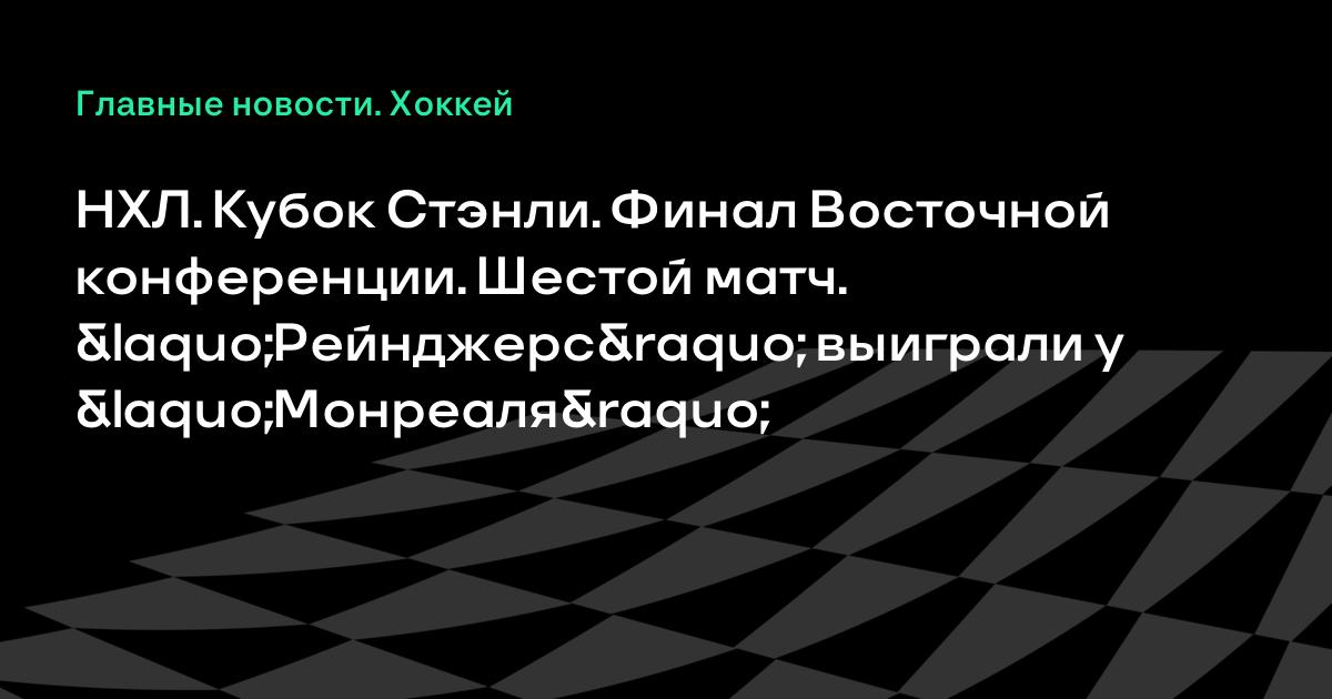 В шестом матче финала Восточной конференции Кубка Стэнли «Рейнджерс» победили «Монреаль» (1:0) и выиграли серию.