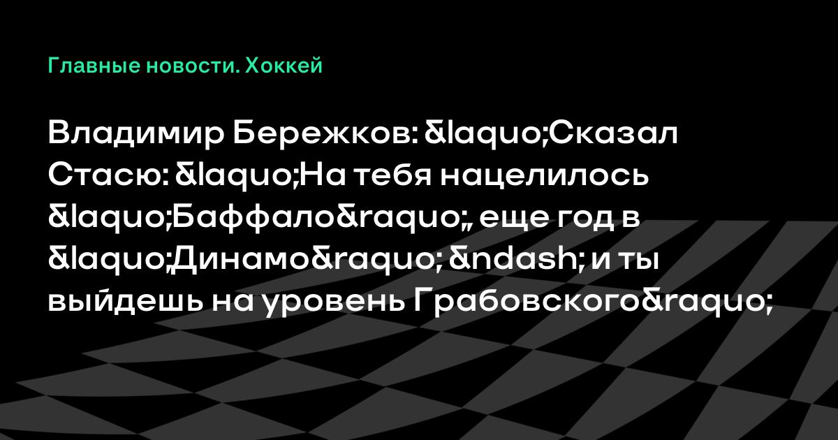 Владимир Бережков: «Сказал Стасю: «На тебя нацелилось «Баффало», еще год в «Динамо» – и ты выйдешь на уровень Грабовского»