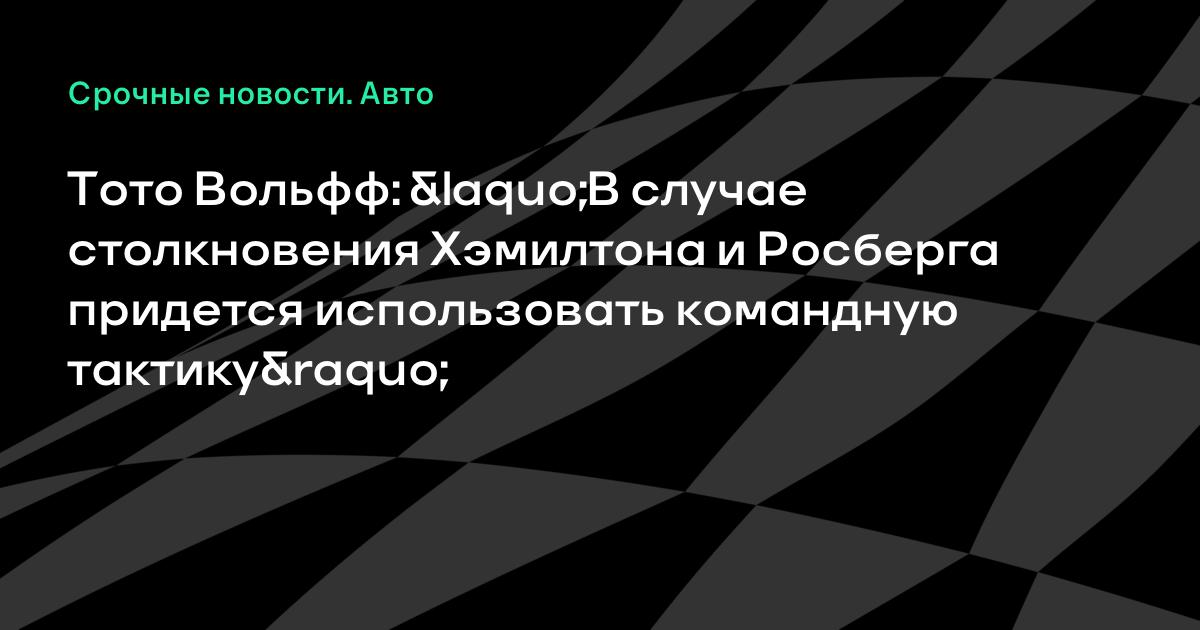 Исполнительный директор «Мерседеса» Тото Вольфф заявил, что если между Льюисом Хэмилтоном и Нико Росбергом однажды произойдет столкновение, то в следующих гонках придется прибегнуть к использованию командной тактики.