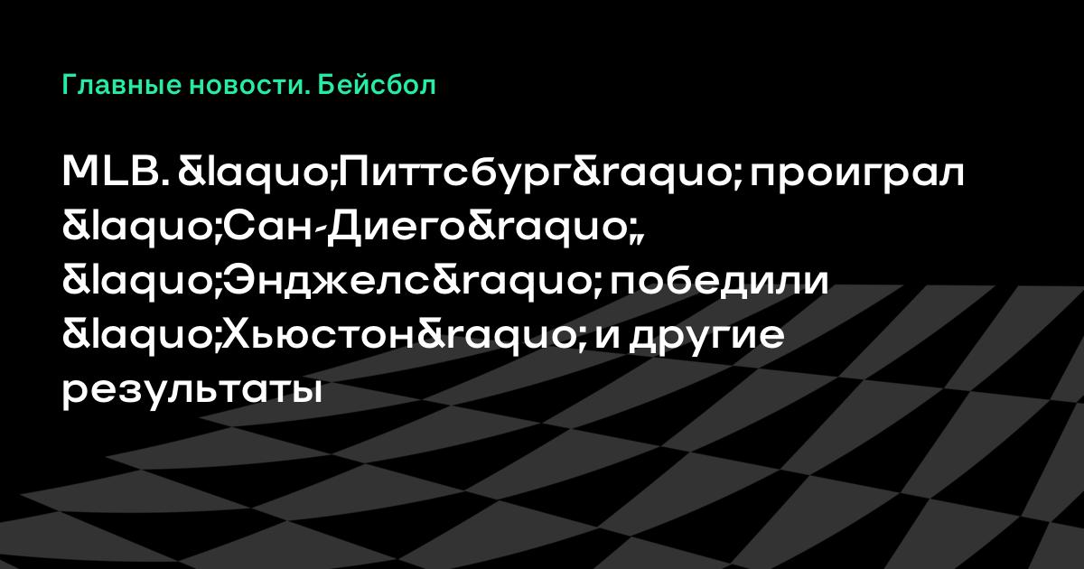 MLB. «Питтсбург» проиграл «Сан-Диего», «Энджелс» победили «Хьюстон» и другие результаты
