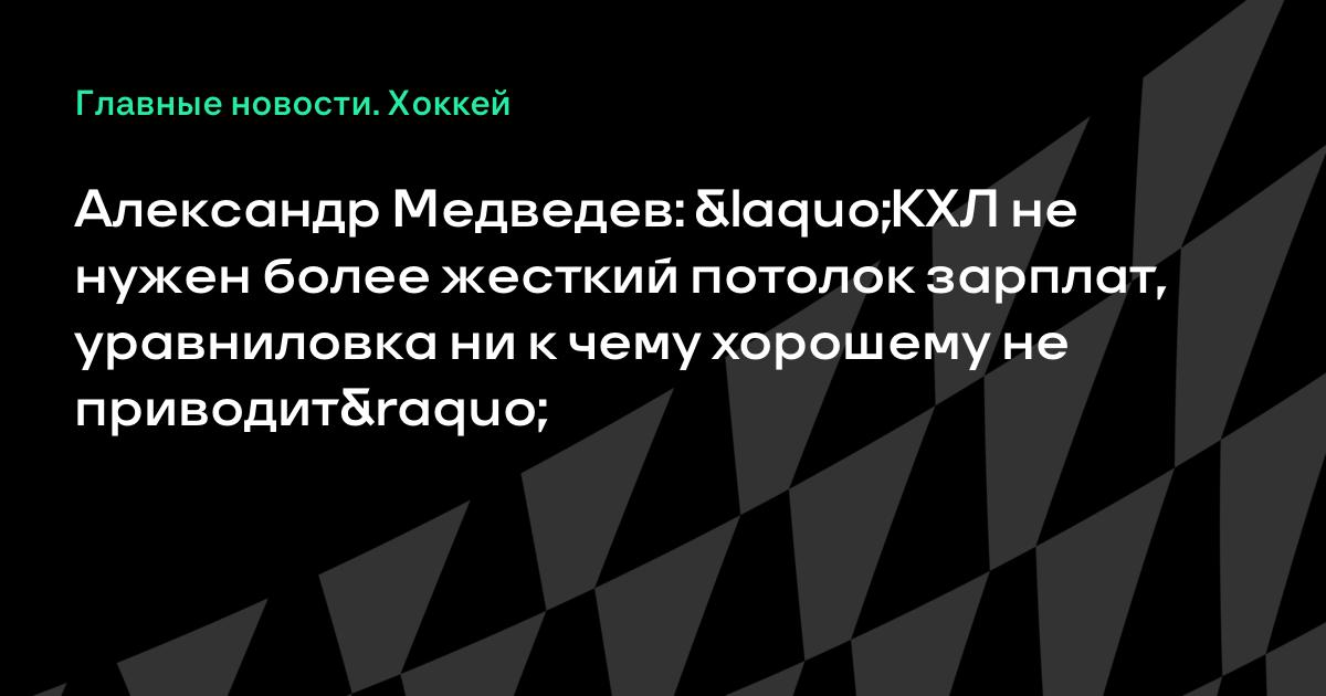Александр Медведев: «КХЛ не нужен более жесткий потолок зарплат, уравниловка ни к чему хорошему не приводит»