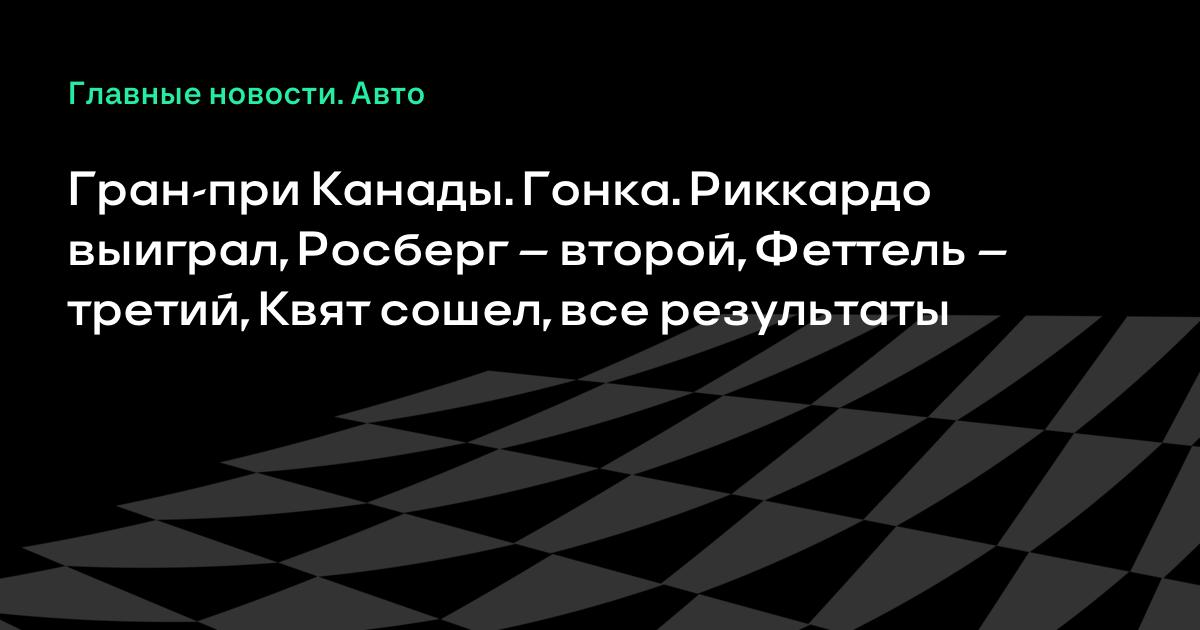 Гран-при Канады. Гонка. Риккардо выиграл, Росберг – второй, Феттель – третий, Квят сошел, все результаты