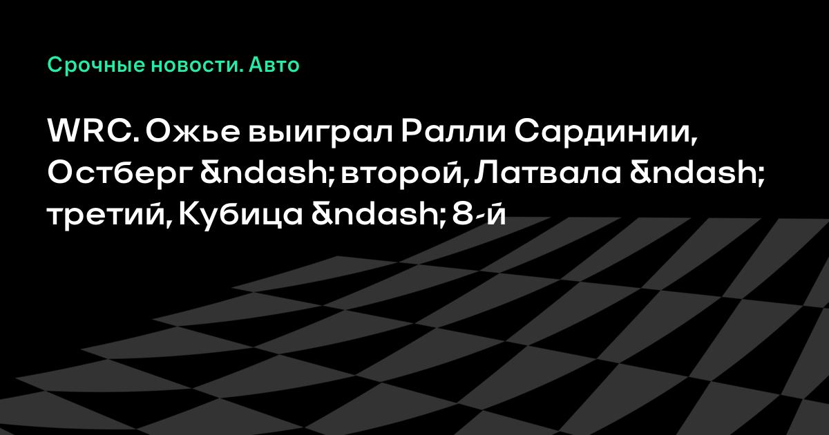 WRC. Ожье выиграл Ралли Сардинии, Остберг – второй, Латвала – третий, Кубица – 8-й